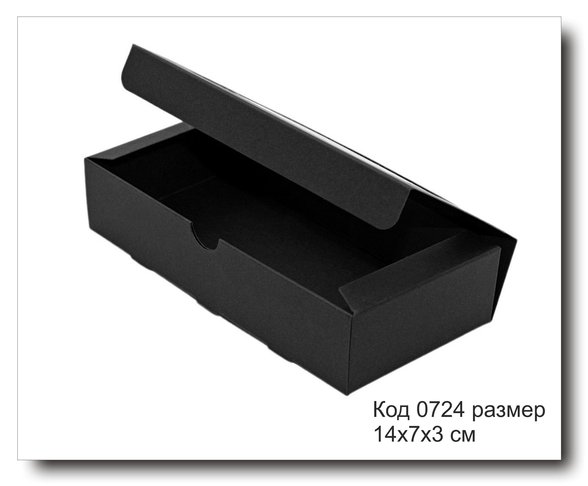 Коробочка прямоугольная код 0724 размер 14х7х3 см черный картон.